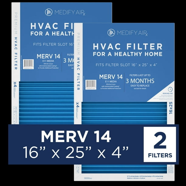 Medify Air 16x25x4 Pleated Filter 95 Particles Hepa Air Cleaning Merv 14 2 Pack Walmart Com